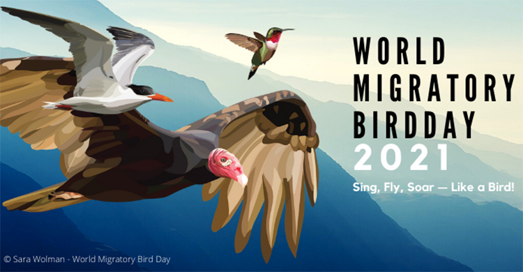 “Canta, vuela y elévate como las aves!" es el lema del Día Mundial de las Aves Migratorias de este año, una campaña mundial anual dedicada a concienciar sobre las aves migratorias y la necesidad de la cooperación internacional para conservarlas. Este año la campaña se centrará en los fenómenos del "canto de los pájaros" y el "vuelo de los pájaros" como forma de inspirar y conectar a personas de todas las edades en todo el mundo en su deseo compartido de celebrar las aves migratorias y unirse en un esfuerzo común y global para proteger las aves y los hábitats que necesitan para sobrevivir.